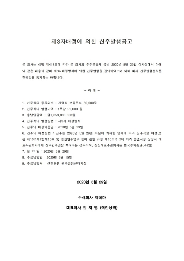 제3자배정에 의한 신주발행공고_20200529.jpg